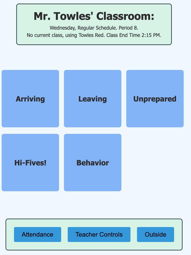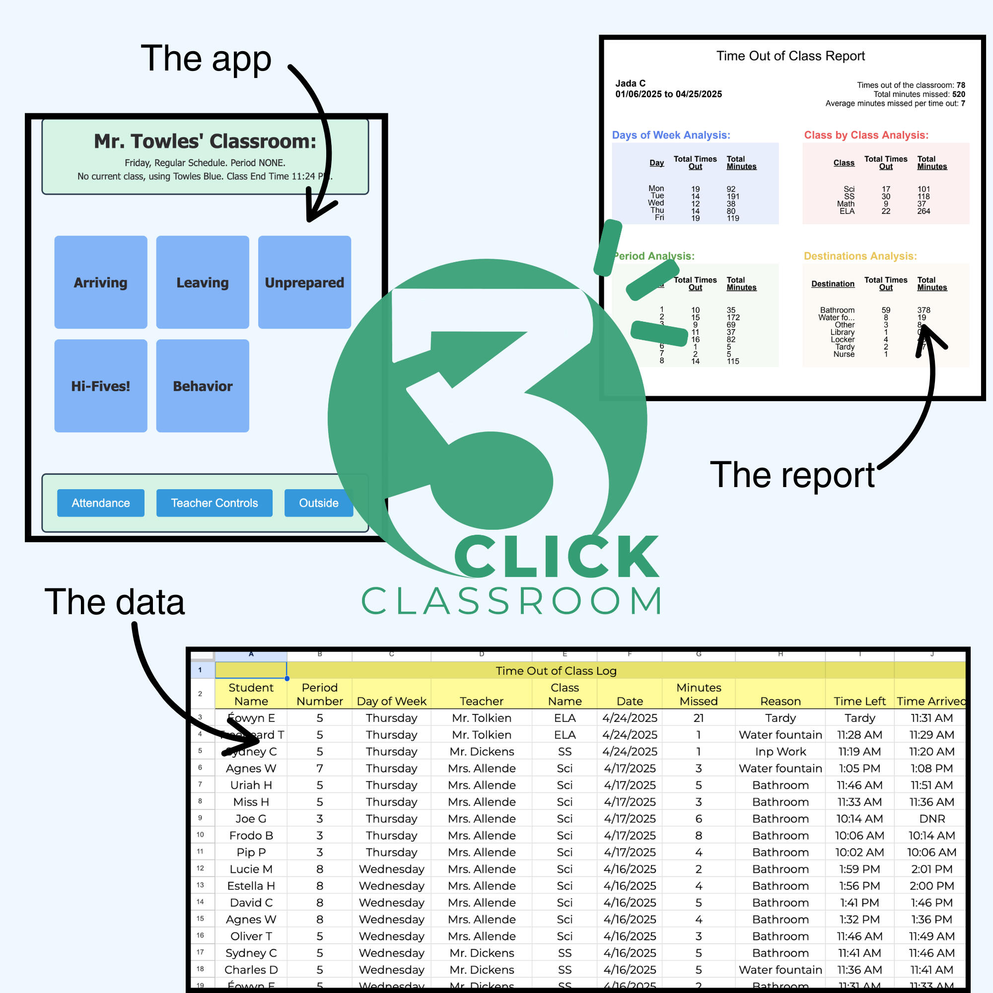 The 3 Click Classroom knows your schedule and class lists so that it is always prepared with your correct student list.