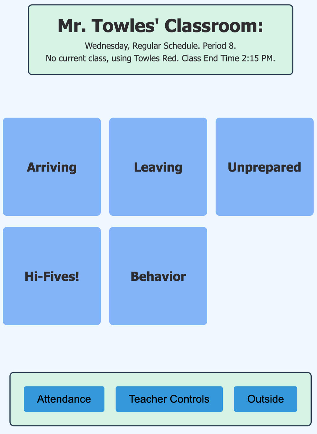 The 3 Click Classroom knows your schedule and class lists so that it is always prepared with your correct student list.